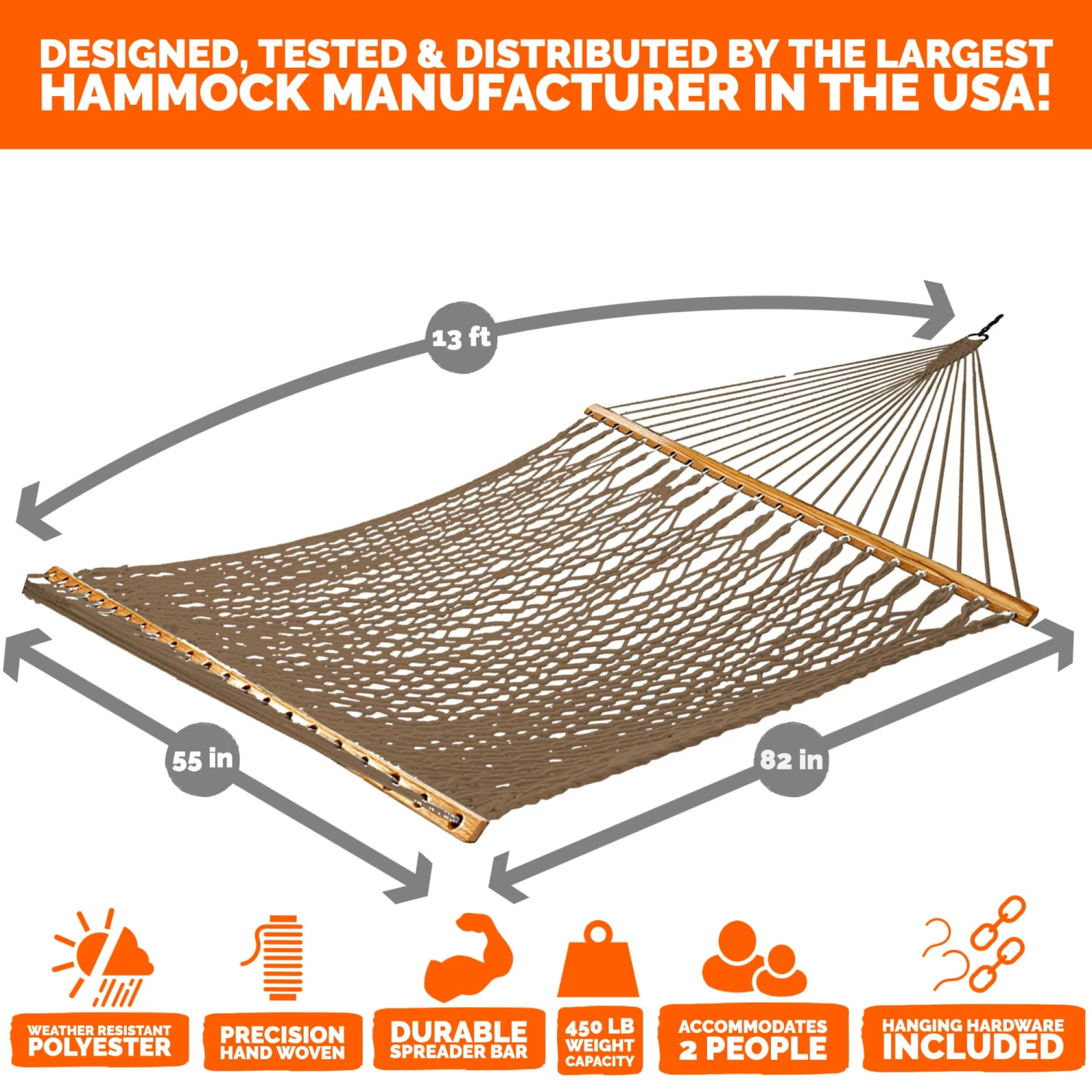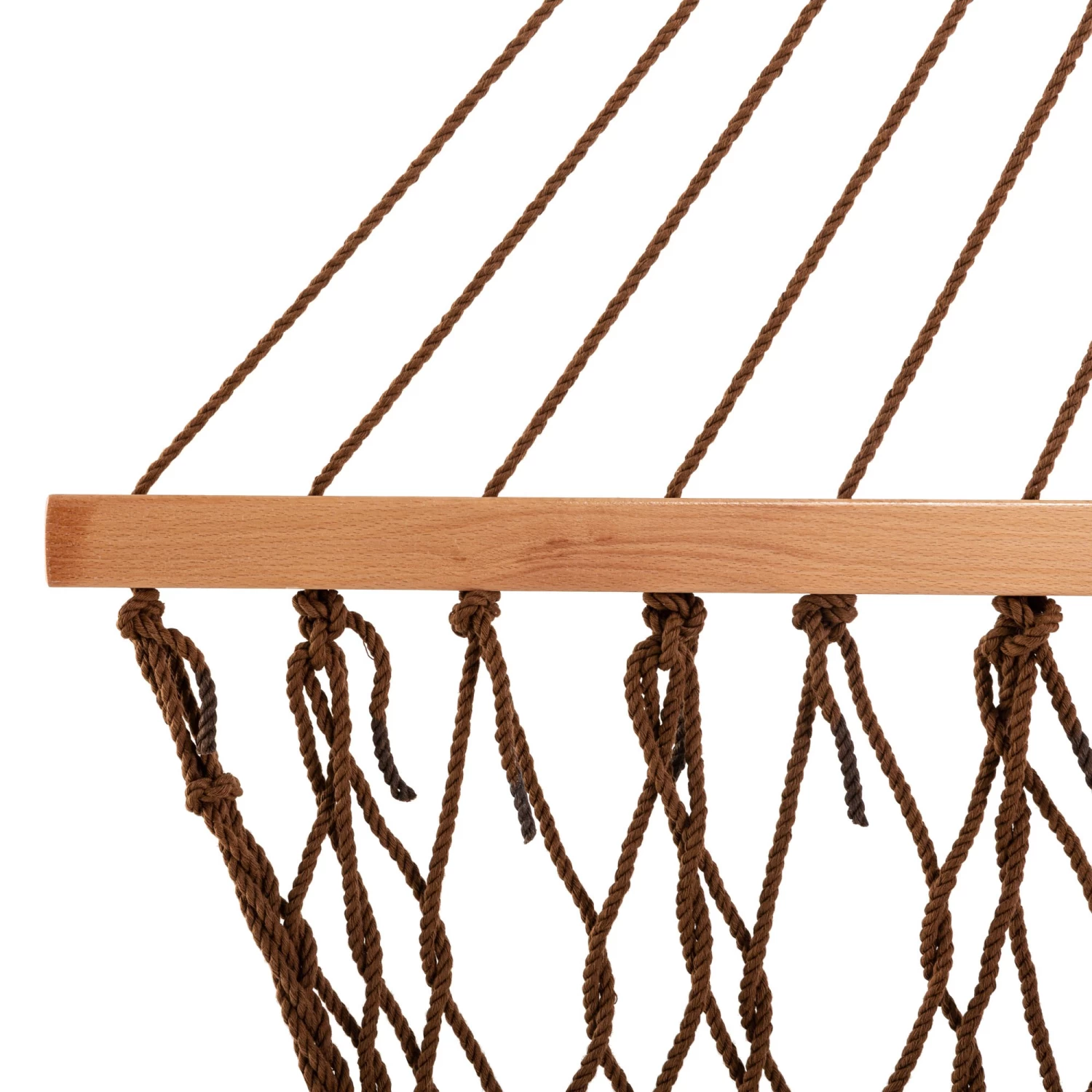- Durable Spreader Bars: Hardwood spreader bar features countersunk spreader bar holes that reduce the severity of the friction between rope and wood.