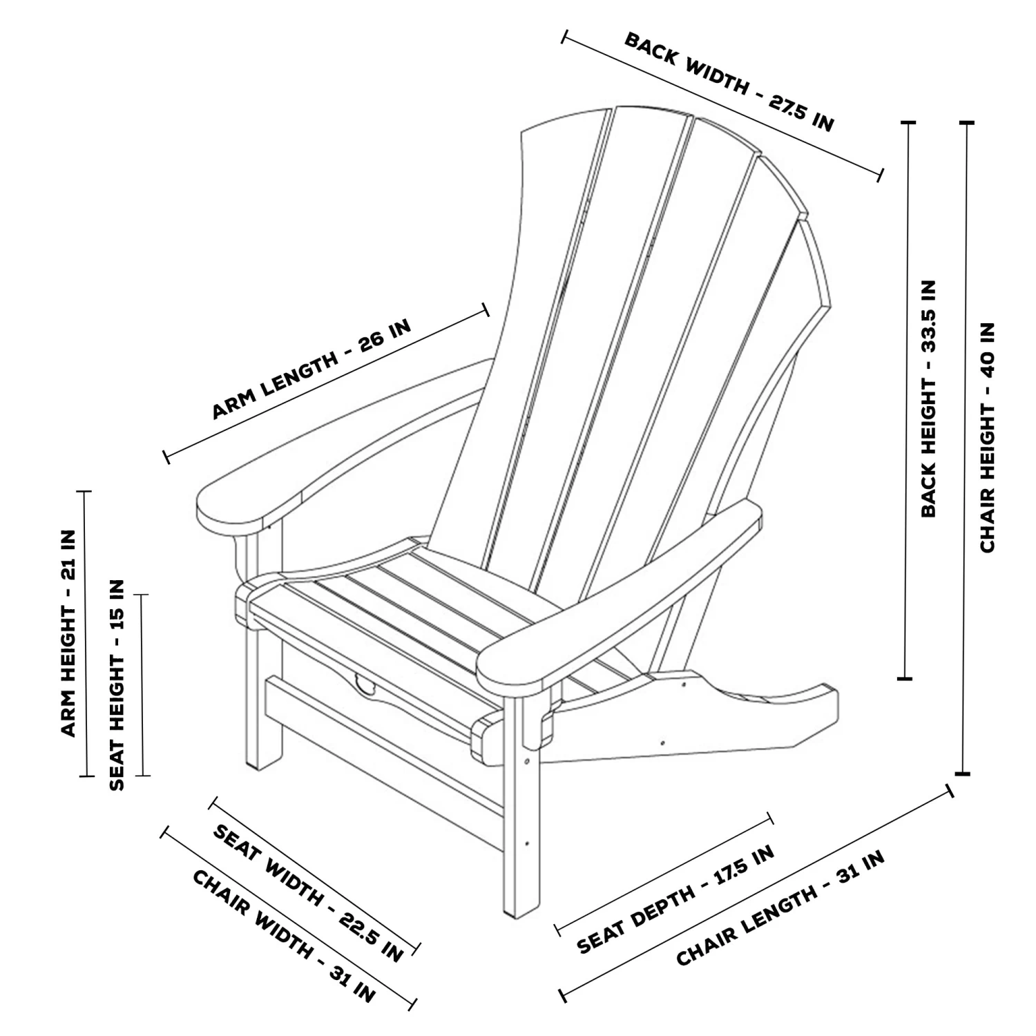 | Pieces Included | 1 x Chair Back, 1 x Chair Seat, 2 x Chair Arms, 1 x Spreader Bar |