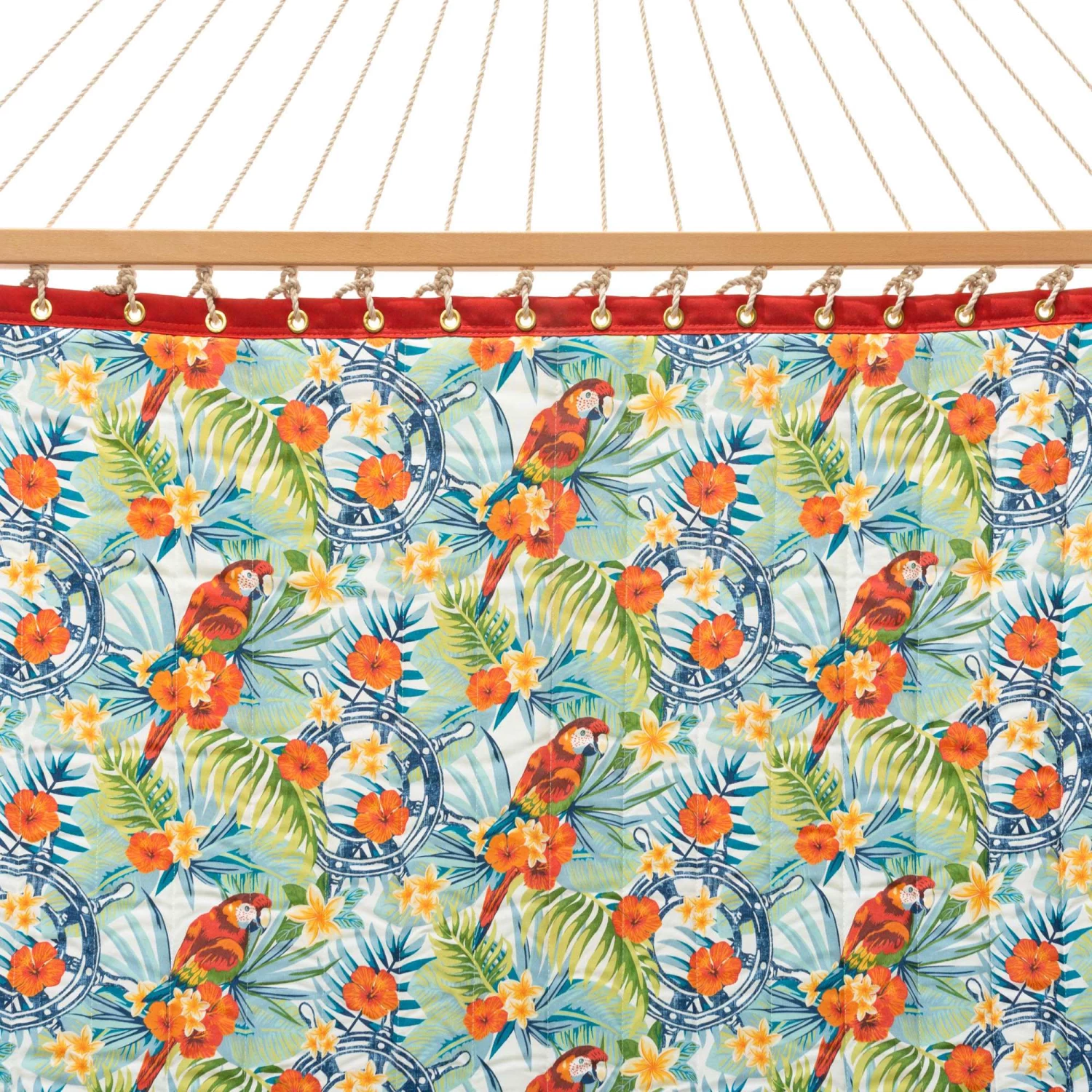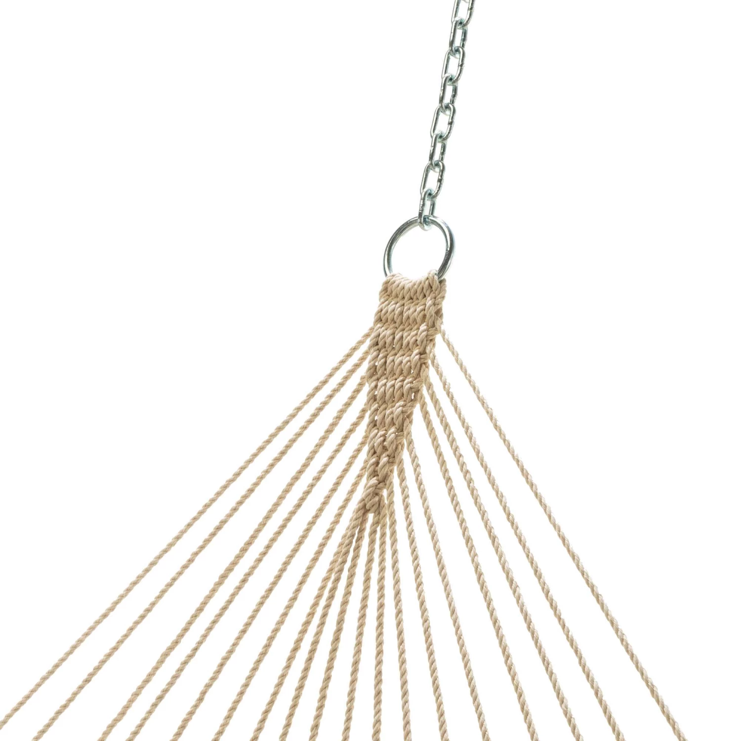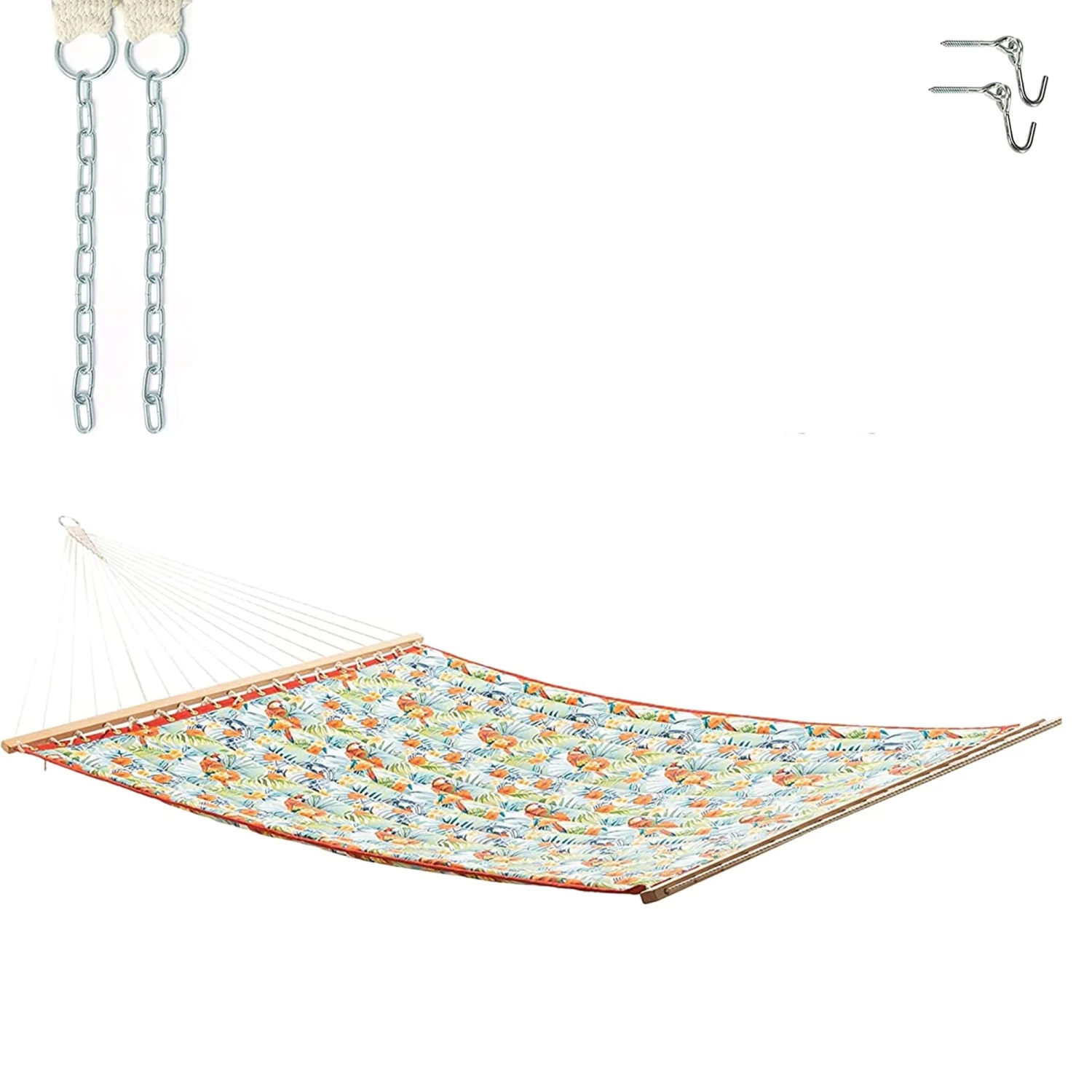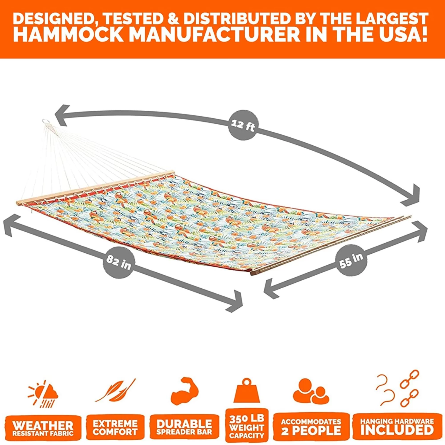 - Durable Spreader Bar: Unlike brazilian style fabric hammocks, this quilted hammock with hardwood spreader bars keeps the hammock bed spread out for you to experience true relaxation without being wrapped in fabric! Each hardwood spreader bar is sanded and varnished to reveal the wood’s natural beauty while withstanding the elements.