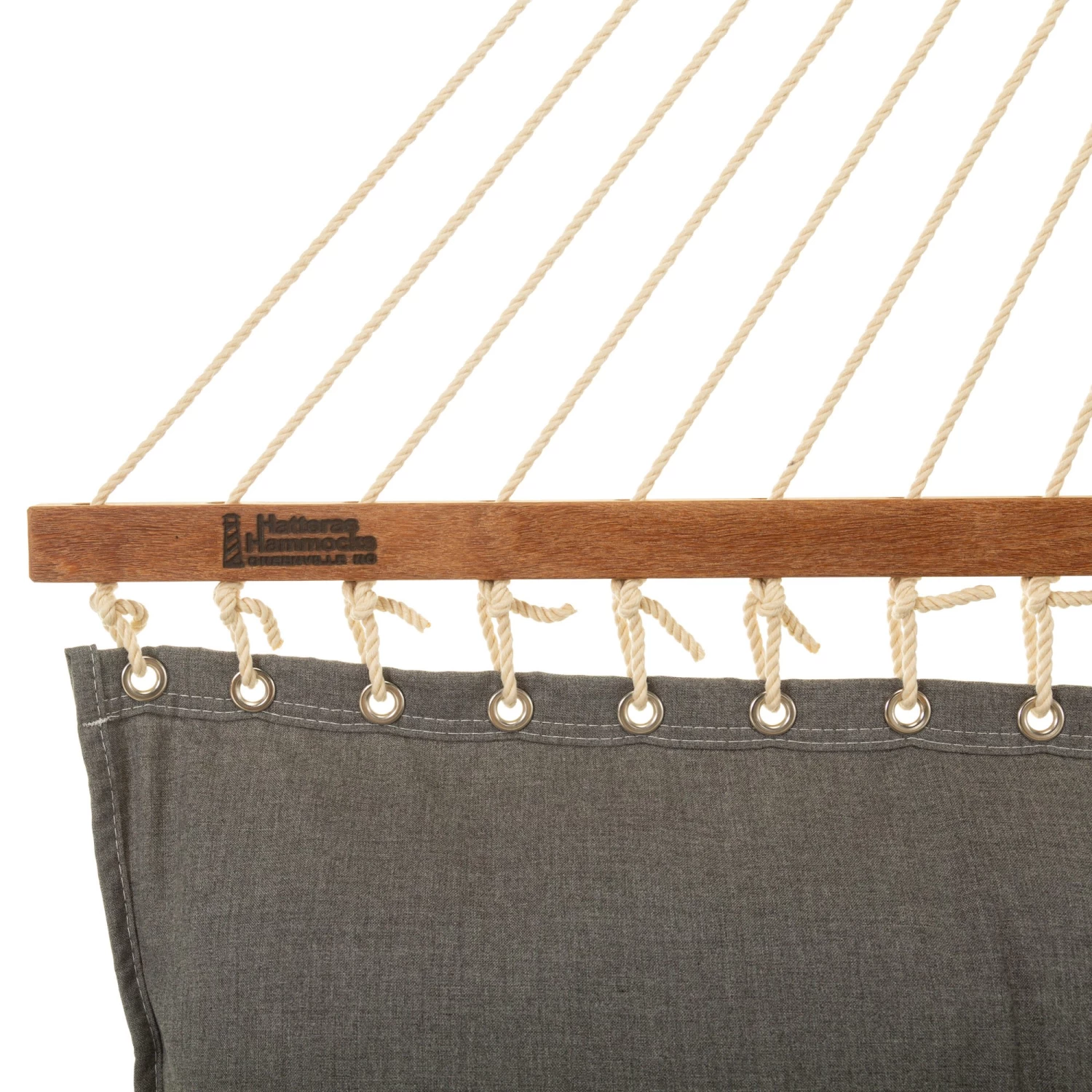 - Cumaru Spreader Bar: Brazilian Teak hardwood, is 5 times denser than pine, cedar, and redwood. Ages naturally to a beautiful silver grey. Exclusive to Hatteras Hammocks.